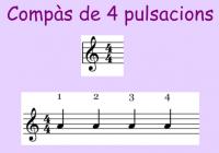 consta d'una primera part visual per a explicar el compàs de 4 pulsacions i les figures rítmiques que el poden omplir així com els silencis.
